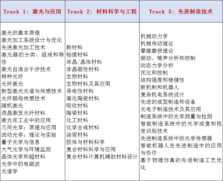 会议主要围绕激光、材料与先进制造等研究领域展开讨论,旨在为从事相关领域研究的专家学者提供一个共享科研成果和前沿技术,了解学术发展趋势,拓宽研究思路,加强学术研究和探讨,促进学术成果产业化合作的平台。